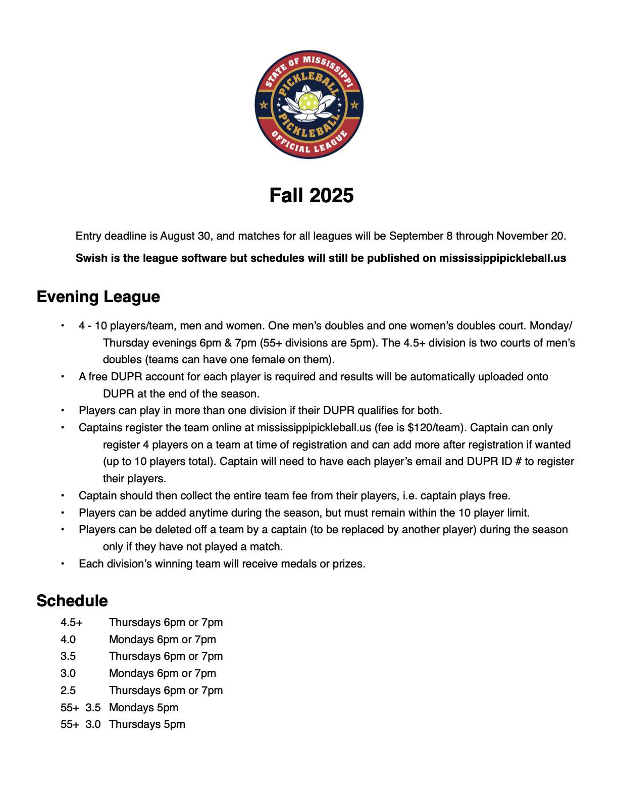 www.mississippipickleball.us   Powered by LeagueLobster | League and Tournament Software